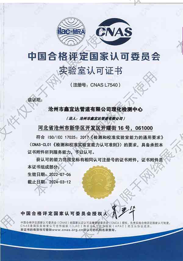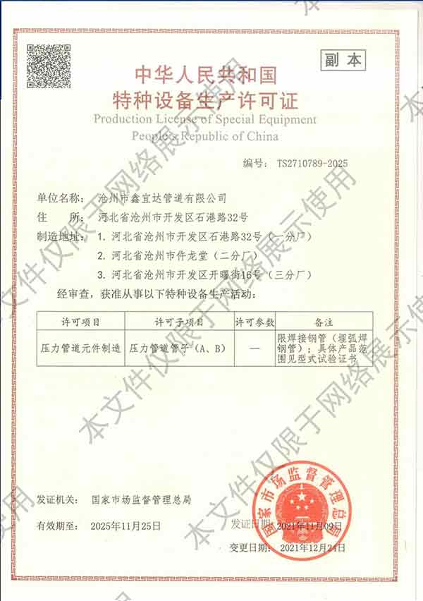 滄州市鑫宜達管道有限公司成立于2003年7月,坐落于滄州經(jīng)濟開發(fā)區(qū),占地面積40萬平方米,注冊資金1.81億元,是集螺旋鋼管生產(chǎn)、防腐加工以及無縫鋼管、卷板、帶鋼等品類鋼材經(jīng)營銷售于一體的工貿型企業(yè)。公司現(xiàn)有員工400多人,其中,中高級技術職稱的人員達120余名。 滄州市鑫宜達管道有限公司擁有9條螺旋鋼管生產(chǎn)線和3PE防腐生產(chǎn)線,可生產(chǎn)直徑219--3640mm,壁厚5.5--28mm,最高鋼級X100的各種規(guī)格防腐螺旋鋼管...